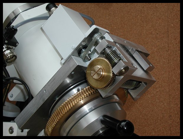 Der Antrieb erfolgt in beiden Achsen über ein zweistufiges Schneckengetriebe mit geschliffenen Schneckenwellen in Rektaszension. Dies garantiert eine hohe Gleichförmigkeit der Nachführgeschwindigkeit